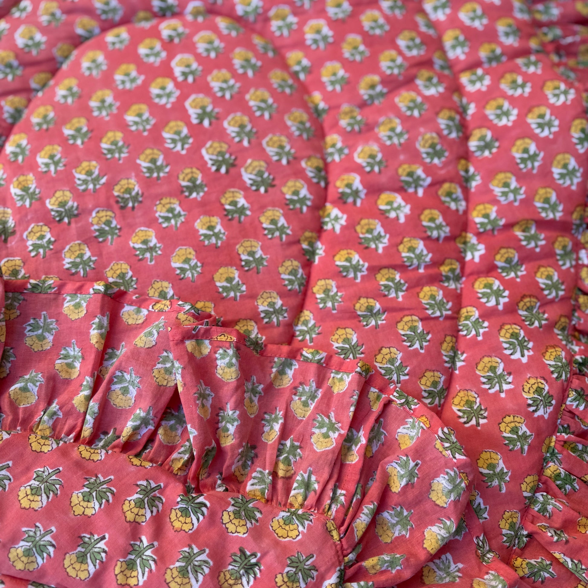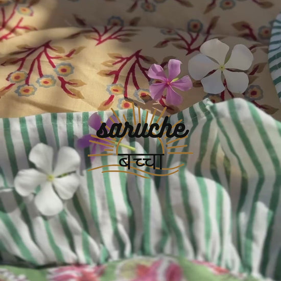 Hand block printing is a traditional Indian textile art, crafted by skilled artisans using carved wooden blocks. Each piece is unique, showcasing slight variations in color and pattern that add to its charm and authenticity. These imperfections are a hallmark of handmade craftsmanship, making every item one of a kind.