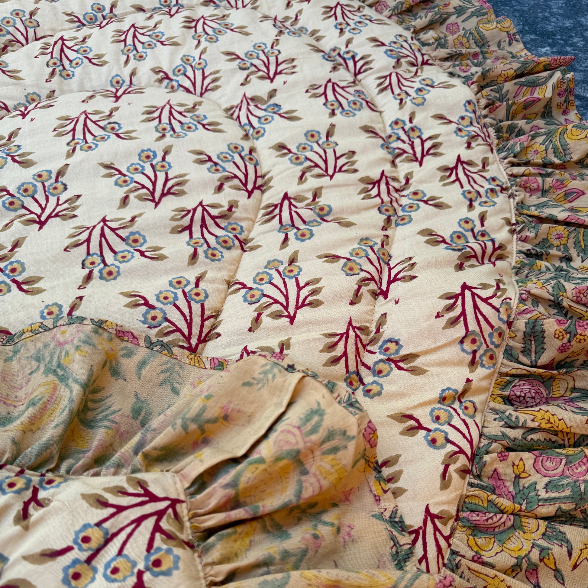 Hand block printing is a traditional Indian textile art, crafted by skilled artisans using carved wooden blocks. Each piece is unique, showcasing slight variations in color and pattern that add to its charm and authenticity. These imperfections are a hallmark of handmade craftsmanship, making every item one of a kind.